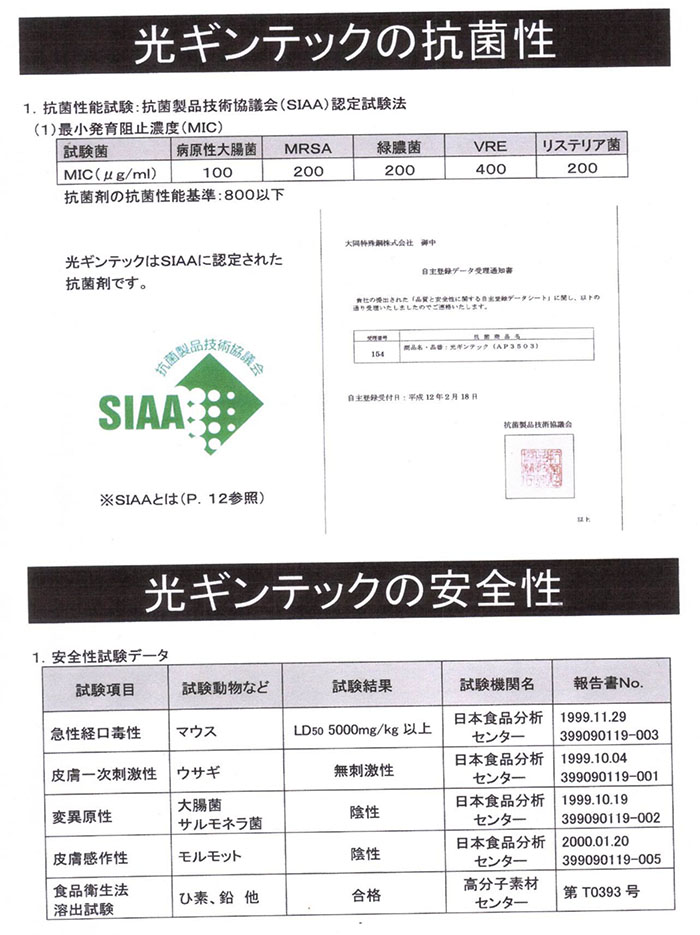 • 國際SIAA抗菌制品技術協會認證